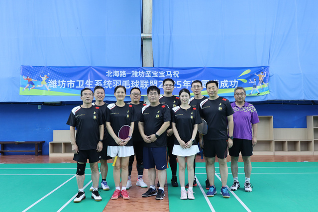 近日,潍坊市卫生系统羽毛球联盟2025年赛在潍坊烽动羽毛球俱乐部正式拉开帷幕。我校教职工羽毛球协会高度重视,精心组织,派出了2支代表队12名队员参赛。